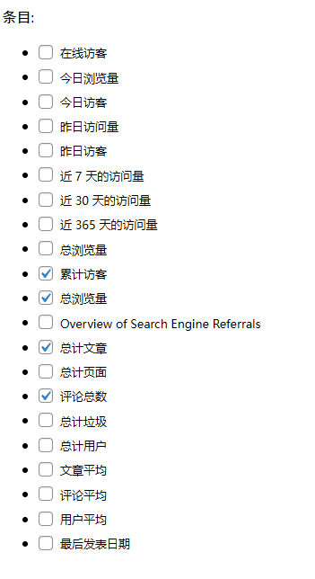 外观 —— 小工具 —— 站点额外内容 —— 旧版小工具 —— 统计