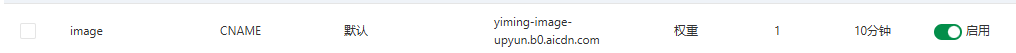 在域名商创建一个二级域名,解析类型为CNAME,记录值是又拍云云存储的CNAME值