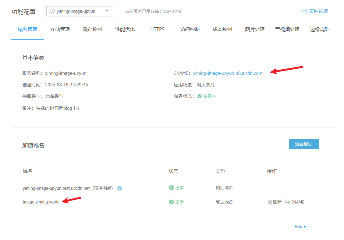 再回到又拍云,绑定刚才创建的二级域名为加速域名