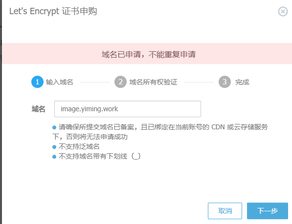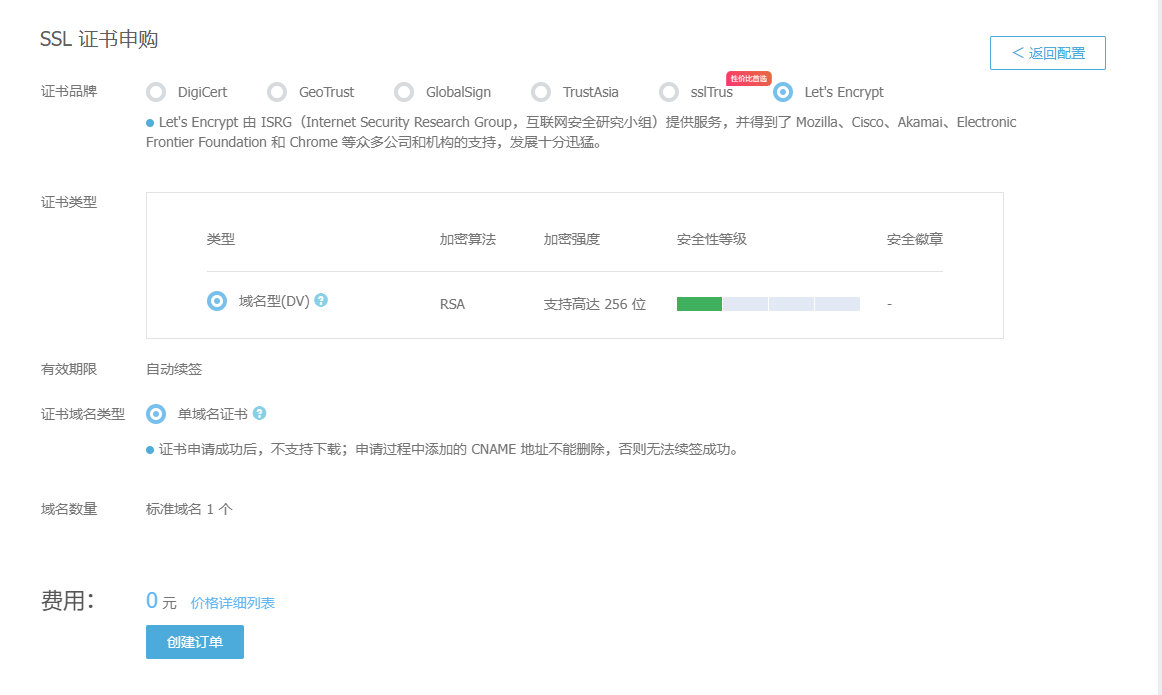 订单创建后,补全域名,填写的还是刚才在域名商那创建的二级域名