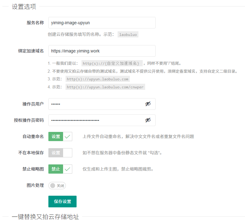 服务名称写刚才在又拍云创建的