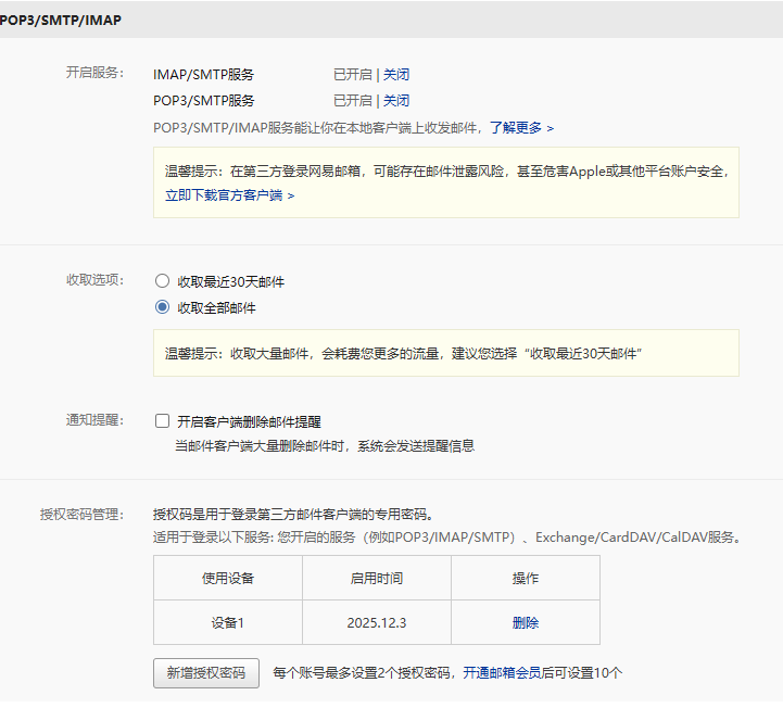 这个密码是授权码,在网易邮箱里新增设备后会给出