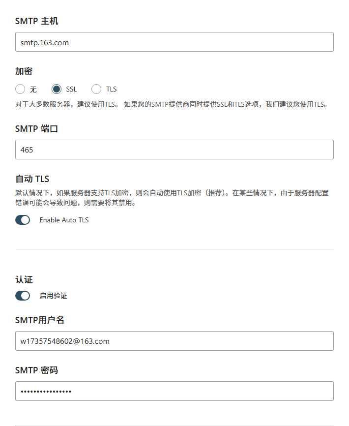 插件配置:选择其他 SMTP,SMTP主机则根据使用的邮箱填写,登录网页版邮箱后找找服务器地址,一般都有写的,网上搜索也可以